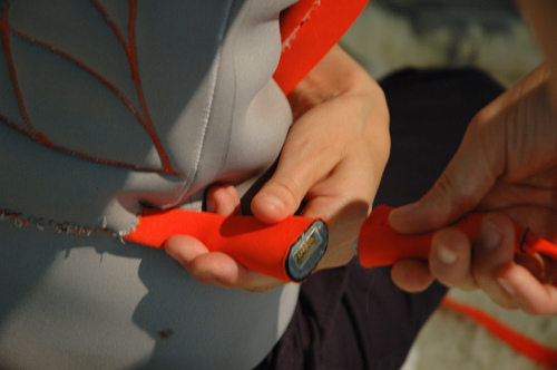The soft flexible buttons are made from layers of conductive fabric and are embedded in the back of the jacket. These buttons register the massage moves and interpret them before passing them on to the console as control signals. This means that Massage me works with existing games, and the best massages come from playing games that require the player to press a lot of buttons and combinations.